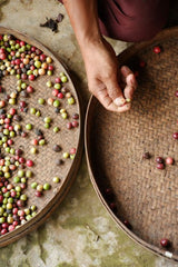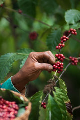 Les fruits du caféier sont soigneusement cueillis à la main par des personnes expérimentées. Une fois récoltés, ils font l'objet d'un deuxième tri afin de s'assurer que seuls les fruits mûrs seront transformés.